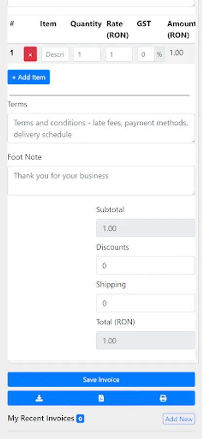 With this application you can issue invoices in a very fast way. The application is extremely easy to use and for this reason it does not have many functions.
