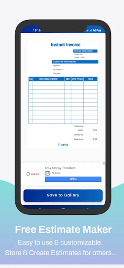 ❖ Personalized Branding: Customize the appearance of your invoices and estimates by adding your business logo, colors, and personalized notes. Create a professional and consistent brand image for your clients.
