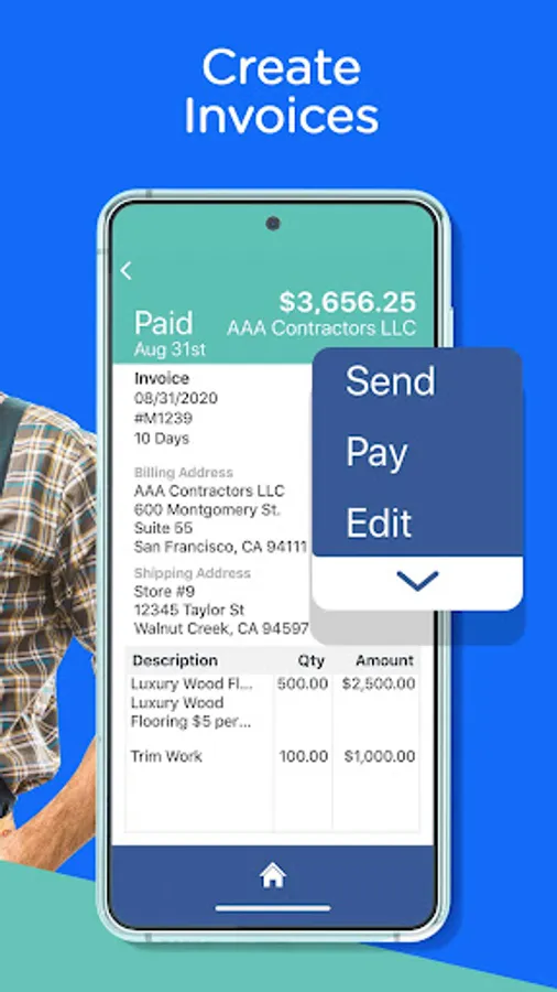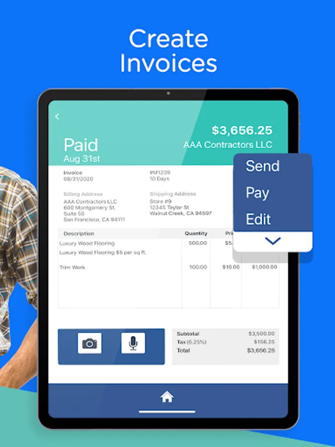- Customize invoices and estimates: Look professional in the eyes of your customers with beautiful estimates and invoices