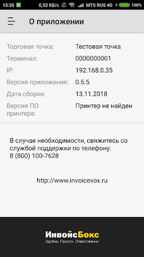 The application “InvoiceBox.Terminal” is intended for service providers connected to the “InvoiceBox” system and using special equipment for organizing the acceptance of payments from legal entities and individual entrepreneurs.