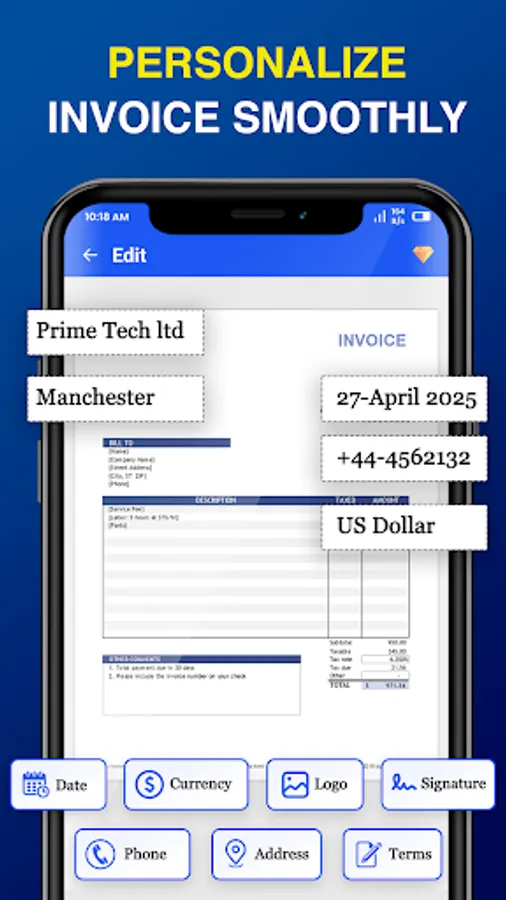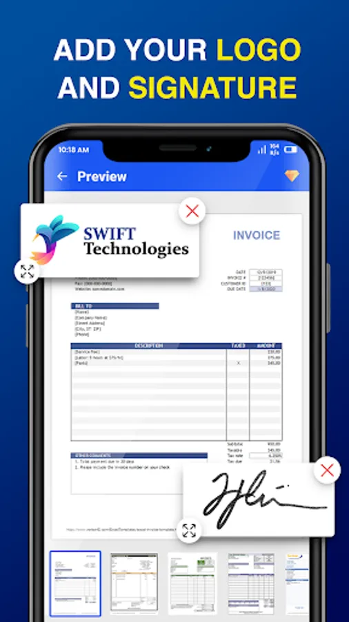 ✅ Customize invoices & estimates with your logo, signature, and branding.