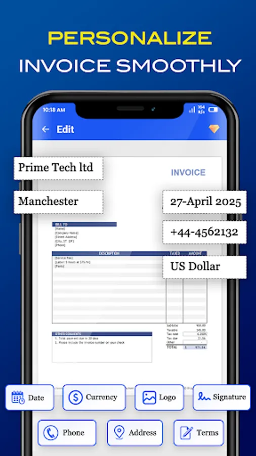 With My Invoice Maker, you can create invoices & estimates effortlessly, customize them to suit your brand, and send them to clients with ease. The app supports multiple currencies and tax settings, making it a great invoice generator for global businesses.