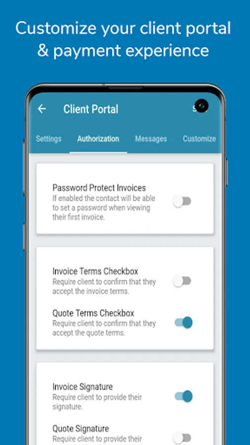 + Receive app and email notifications when client view or paid.