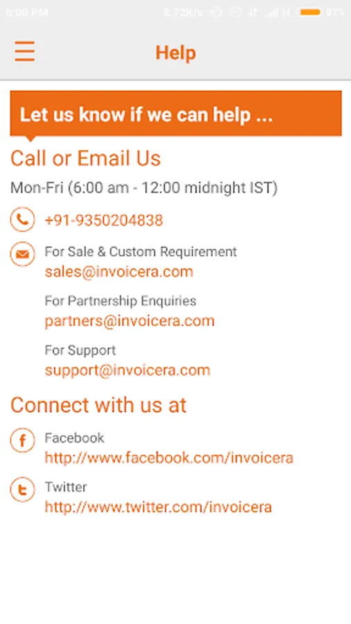 Do mail us your queries and feedback at support@invoicera.com
