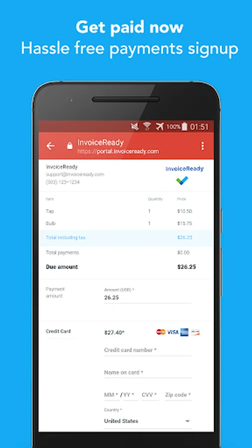 Invoice Ready is a an easy to use app to invoice your customers and get paid painlessly.