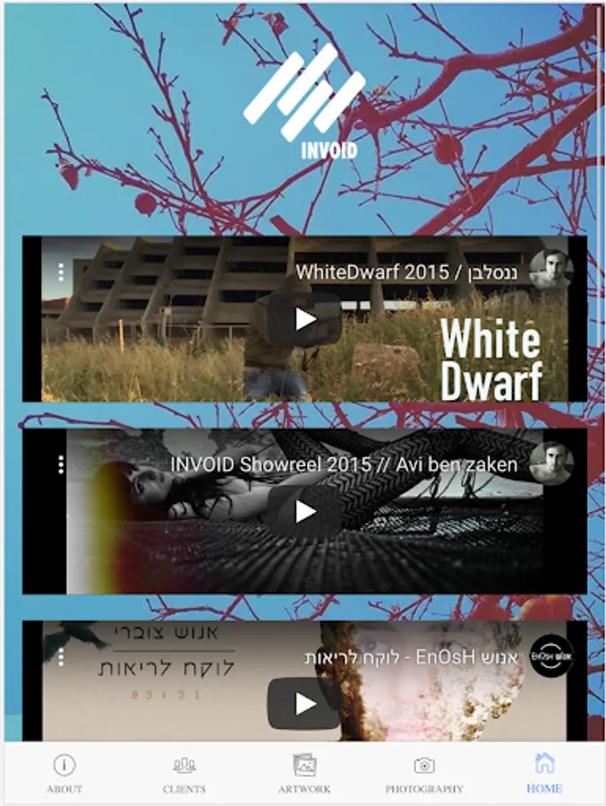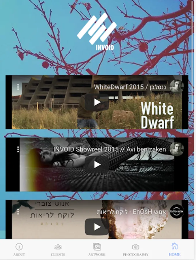 Portfolio app for artist (Director,Editor,Photography) Avi Jimmy Ben Zaken including videography,Ï artwork and photography