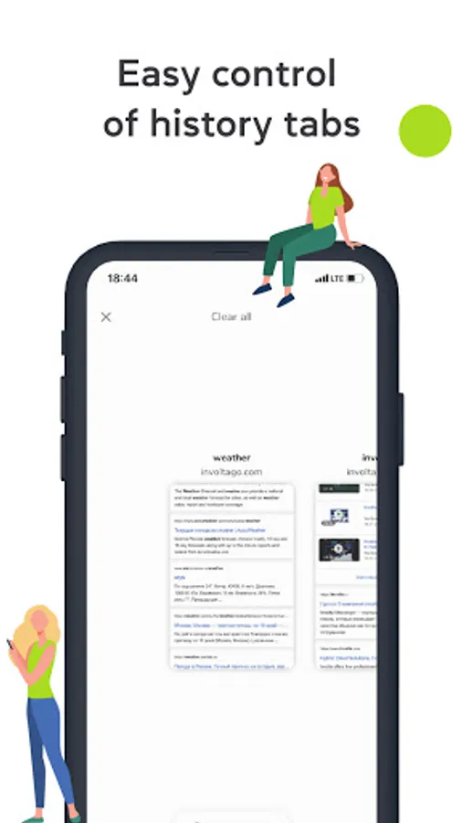 • History control. Involta Go brings search queries to a separate tab. The most frequently visited websites will remain at your fingertips, in the browser, and on the mobile device.