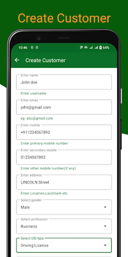 Create and save all your customers within a few clicks .Create Customer by adding his name, email and other details.