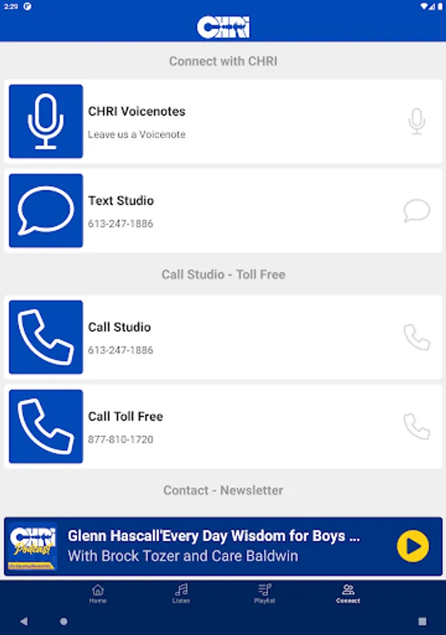 - Listen to CHRI on the go