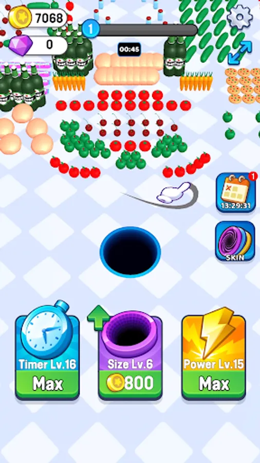 Try to control a powerful hole that collects everything - Beverage, fruit, plate, fork and many mores! Get bigger and faster by upgrading. Explore different places and fill your hole with yummy things. Shop for makeup, groceries, and stationary. Organize them neatly. It's like a cosmic adventure of collecting fun!