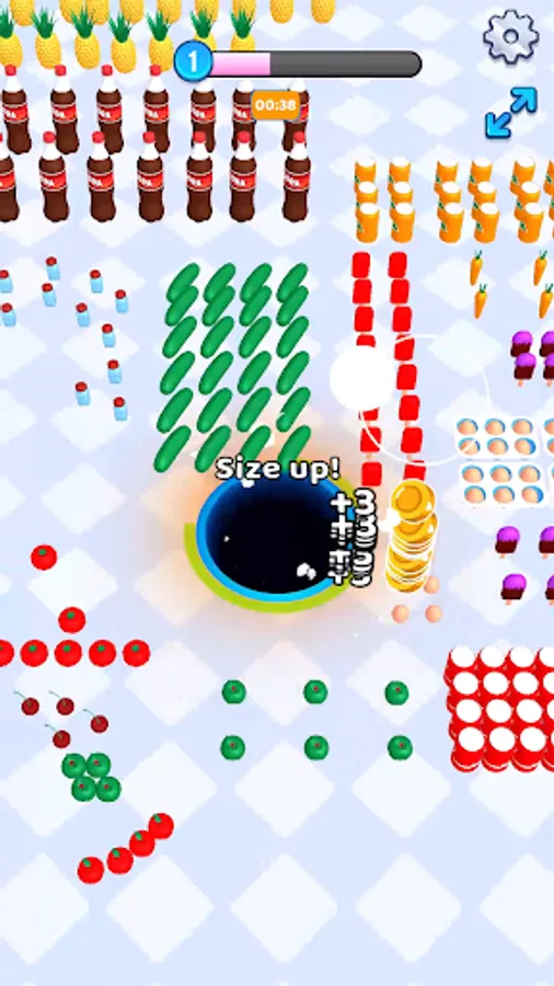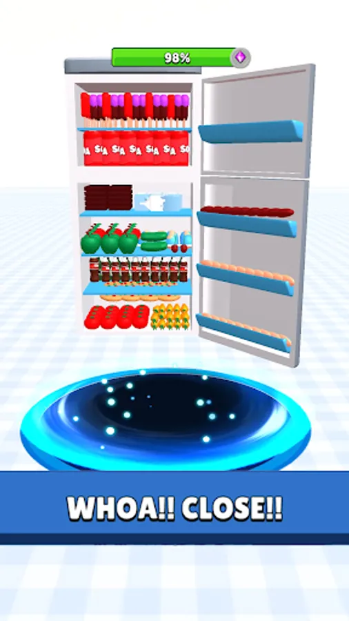 1️⃣ Gather and munch on items to expand your hole, finish levels quickly, and stock the fridge with tasty groceries.