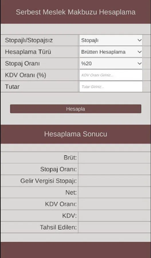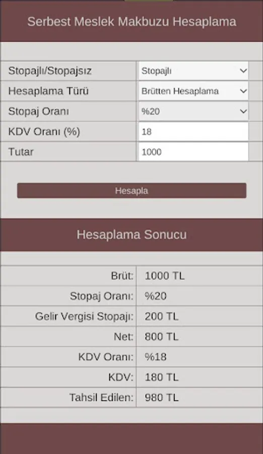 Self-employment Receipt Calculation application with withholding and withholding tax; is a free application that helps you to accurately calculate the receipt by calculating the amount from the net, gross and from the collector.