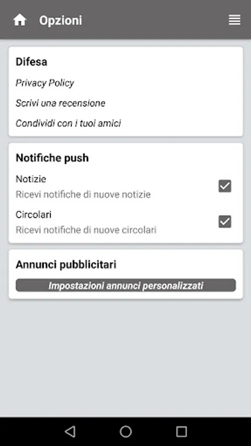 It is possible to activate notifications to receive a message when a new news or a new circular is published.