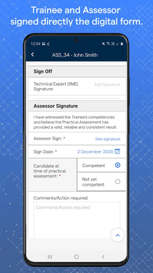 Digitise the entire practical field assessment process with INX Assessor. The App is designed to overcome the common challenges of managing practical assessments in the field. Assess all your trainees on site on your mobile device or tablet, even without network. From the form creation to the validation, 100% of the process is made available from mobile devices. Assessments can be carried out in remote locations. The app will auto-synchronise all your forms and speed up assessment review and approval with in-built workflows.