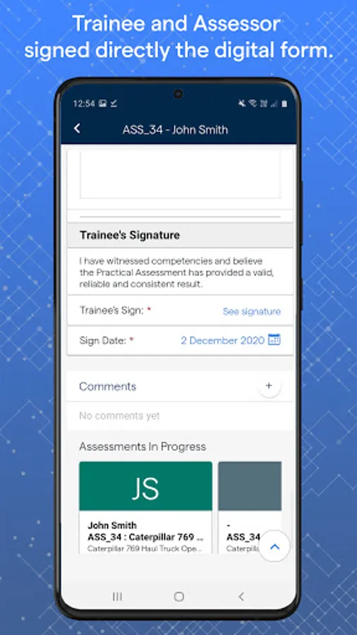 The solution enables better management and visibility of practical assessments onsite whilst also reducing the time spent on administrative tasks such as scanning or filing paper forms. Our cloud-based assessment tool allows your team to create forms directly from the gallery of templates and manage them directly in the system. Whenever you need to assess someone in the field, just select the form you need and start the assessment. It is that easy.