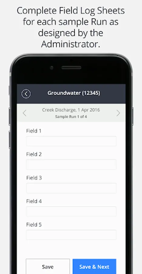 • Offline data capture to allow users to save field sampling information from remote locations and as soon as they have connectivity, the data can be saved to the database