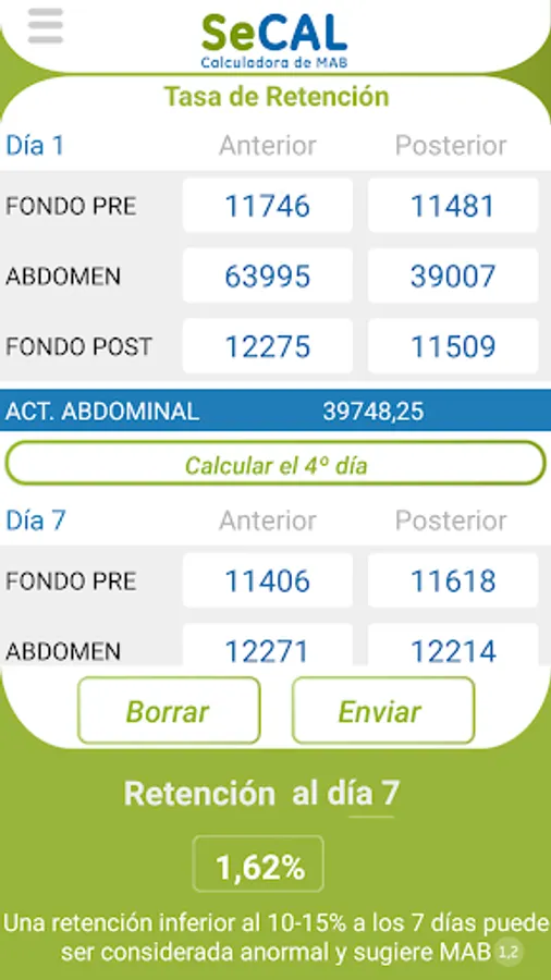This App facilitates the calculation of the retention rate of bile acid. Measuring bile acid retention is done in the Nuclear Medicine. the drug is administered, a measurement is performed and repeated at 7 days. Calculating the% retention at 7 days will tell us whether there bile acid malabsorption (MAB) and thus contribute to better patient management.