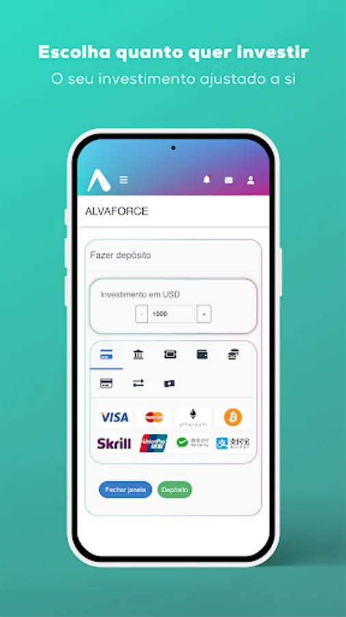 Obtenha a Alvaforce App para iOs e Android e tenha acesso instantâneo a investimento, depósitos e à performance dos seus produtos Alvaforce.