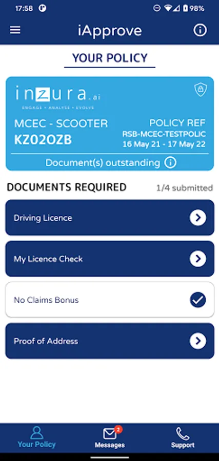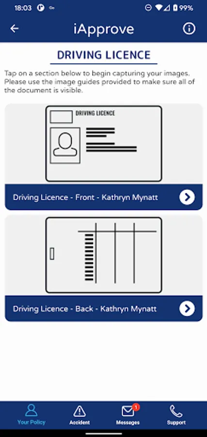 Once installed, it wil only take a few minutes to photograph your documents and have them safely delivered to your insurer. Use the chat service to ask your insurer any questions or call them directly from the app.
