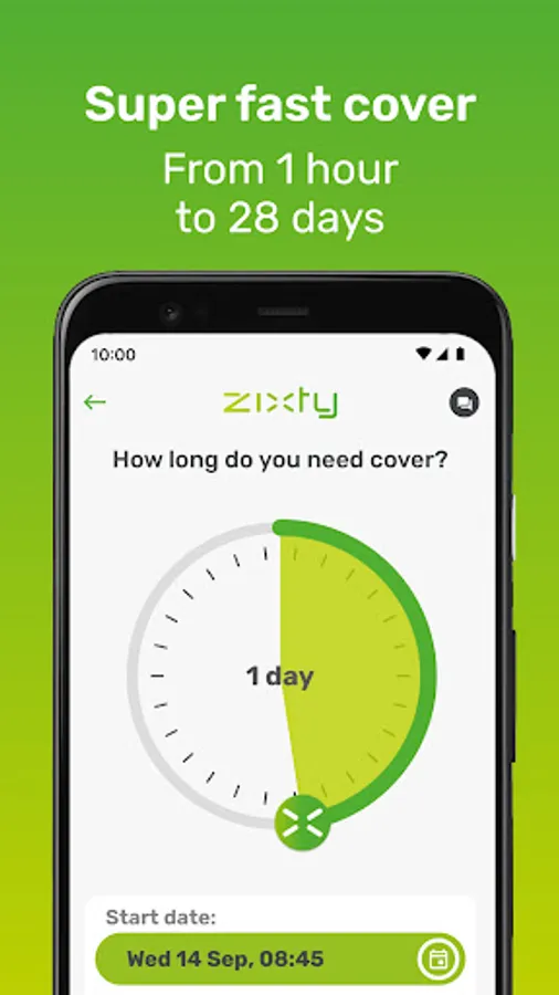 Cover from 1 hour to 28 days, starting immediately, or at a time to suit you. All in the app. Super easy. Lovely.
