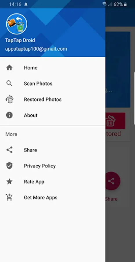 Simple and useful photo recovery. Simply open Easy Photo Recovery, press scan and wait for the application to scan all the images. Then select the deleted image to restore and click restore. It will appear directly in the gallery of your device.