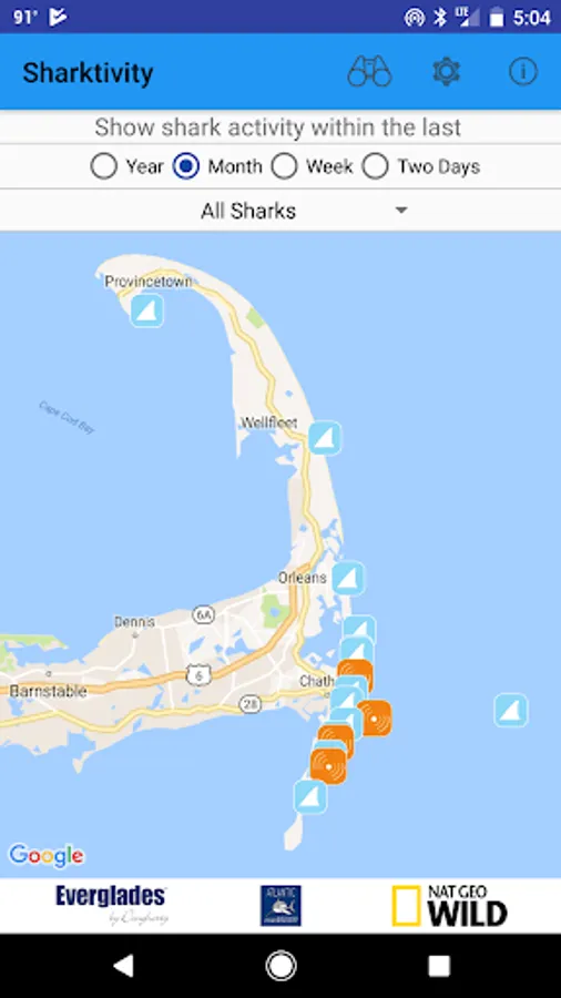 Use the app to view sightings or submit your own! Receive push notifications for beach alerts based on confirmed shark sightings.