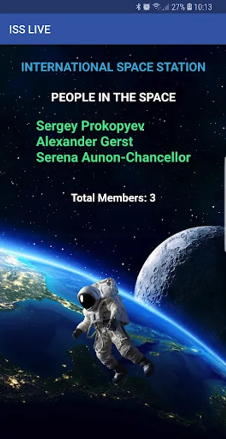 Discover the name of the people on board the ISS with the "PEOPLE IN SPACE" function.