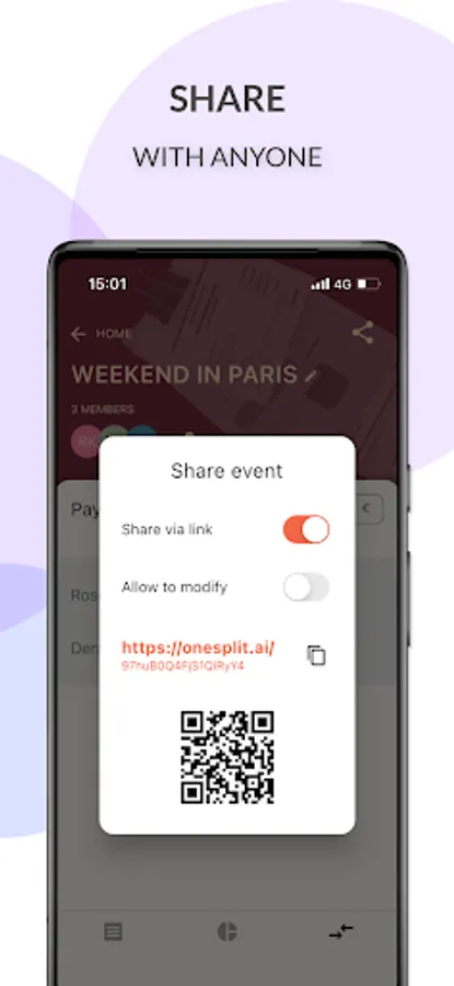 • View and share bills outside the app with links and QR codes – Generate links for other people to view or edit the bill. Even for those who don’t have an account or who are viewing on a computer.