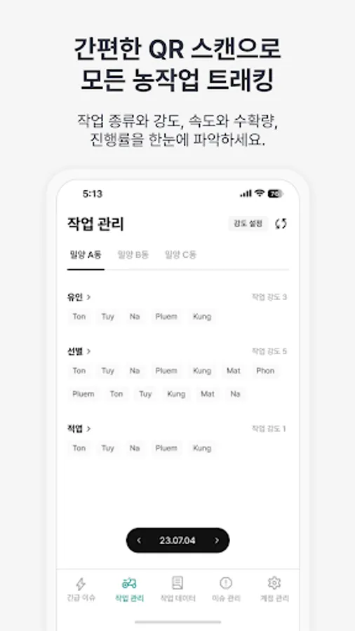 It's simple and easy to use, so everyone in the greenhouse can use it consistently. All you need to do is scan the QR code attached to the facility with your smartphone. At a glance, you can see who performed various tasks, such as attracting, dropping leaves, red growing, and harvesting, when, where, and how. Check your progress and incorporate it into your next farm project. You can immediately know specific results such as yield. You can also quickly check for pests or facility problems and take action. Reduce simple tasks such as checking worker attendance and focus on more important tasks. Ation can be accessed anywhere, 365 days a year through PC and Mobile.