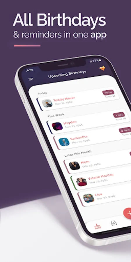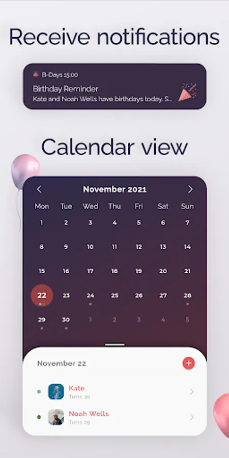 🎈 Upcoming Birthdays: The app allows you to see upcoming birthdays in the next few days, current week or month. This feature helps you plan ahead and make sure you have enough time to prepare for the celebration. Whether you need to buy a gift or send a card, this app will ensure you don't miss any important dates.