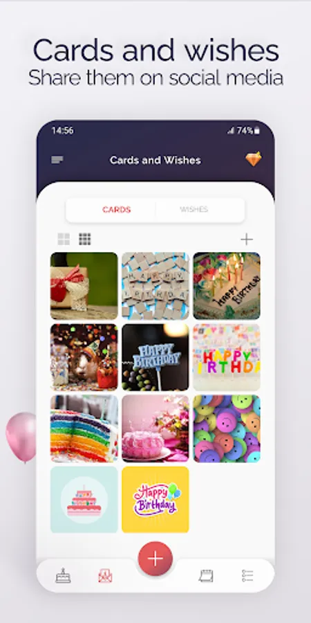 💌 Send Cards and Wishes: Birthday Reminder & Calendar comes with pre-made templates that you can use to send birthday wishes and cards through Facebook, WhatsApp, and other social media platforms. You can even save cards and wishes to the app and easily send them to multiple people. This feature makes it easy to stay connected with your loved ones, even if you can't be there in person.