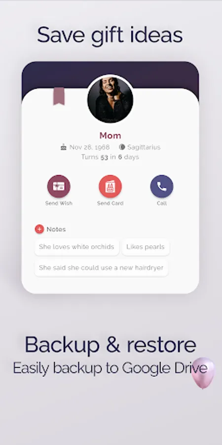 🎁 Save Gift Ideas: Keep track of gift ideas for your loved ones with Birthday Reminder & Calendar. This feature allows you to save gift ideas for each person in your contact list. This way, you can easily refer back to the list when it's time to buy a gift. It also helps you keep track of what you've already given to someone, so you don't accidentally repeat a gift.