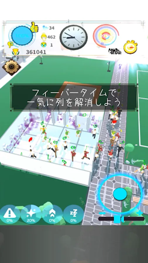 ・ Accumulate refreshing points to expand facilities and activate fever time to handle users at once