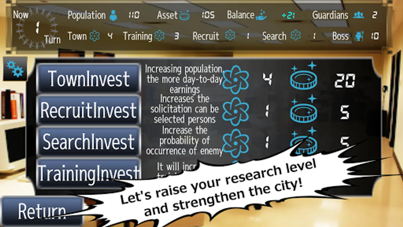 *Town Investment: Increase population increasing every turn