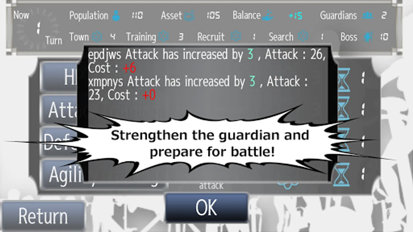 -- Increasing the search level increases the probability of boss appearance, so you can not win if you remain weak guardian