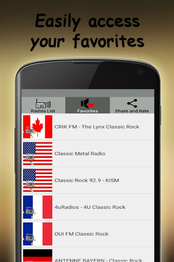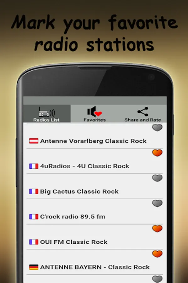 When you identify classic rock stations that you like, you can mark them as favorite to access them easily whenever you like.
