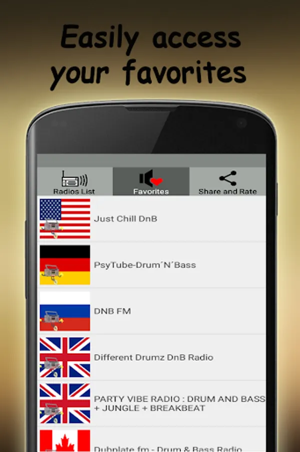 - Access to the best free DnB music radio stations from different parts of the world