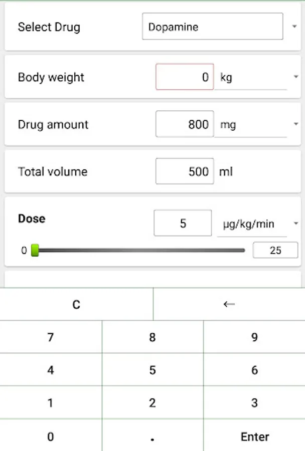 1. Dose/rate calculator: get the infusion rate from body weight, desired dose, drug amount and total volume. Built-in commonly used drug information. Custom drugs, backup/restore function (only for Full-version).
