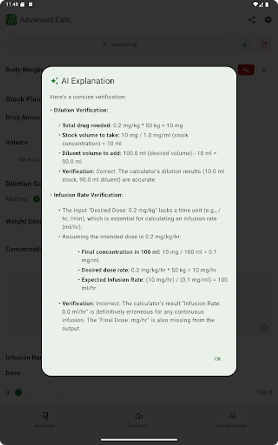 Infusion Calculator is designed for educational purposes to help verify and explain IV infusion calculations. Now enhanced with AI technology to provide instant verification and explanations.