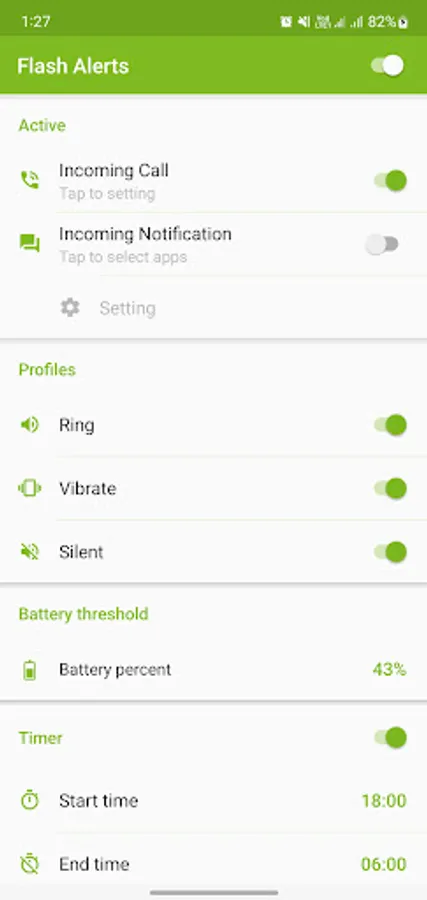 ✔ Install LED Flash for Alerts when mobile phone is in Vibrate or Silent.