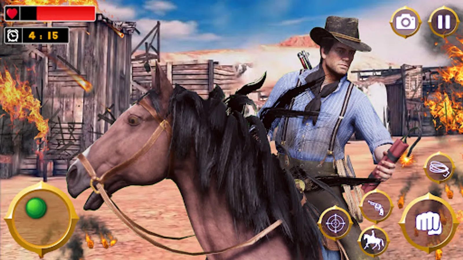 - Highly customized engaging levels of wild western cowboy games.