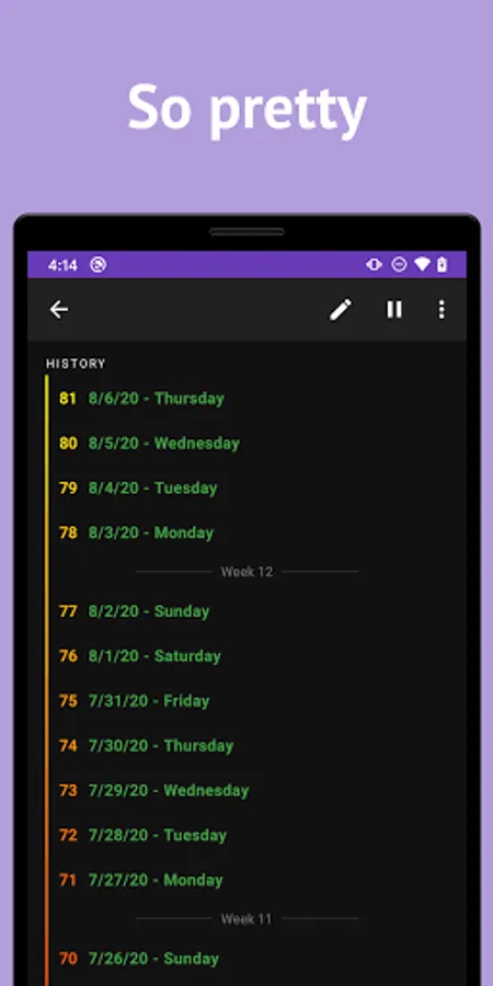 Not all days are the same. Customize your day by specifying which questions appear on which days of the week. Going on vacation? Pause your questions until you're ready to resume them.