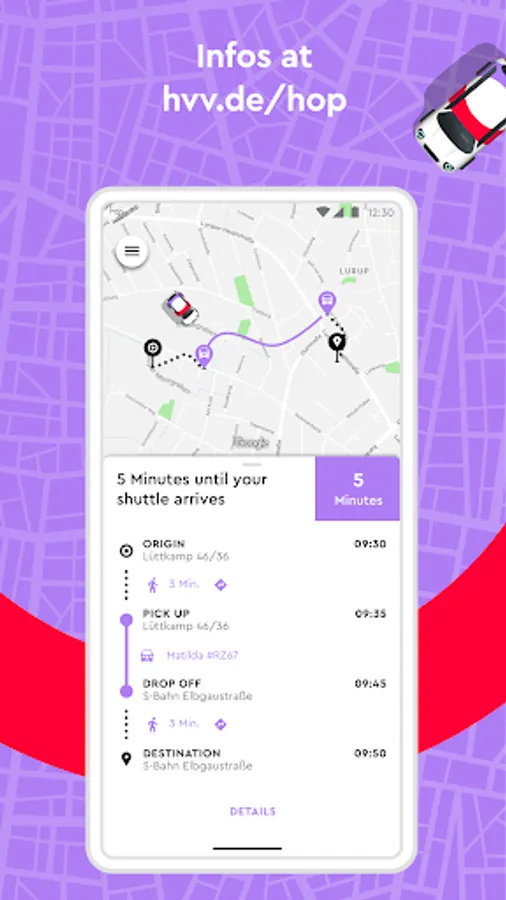 Moin Moin! With our on-demand shuttle service, mobility has become even smarter: You can book your journey conveniently and individually via an app, without a timetable - create your individual travel chain with hvv hop and reach your destination comfortably, quickly and safely.