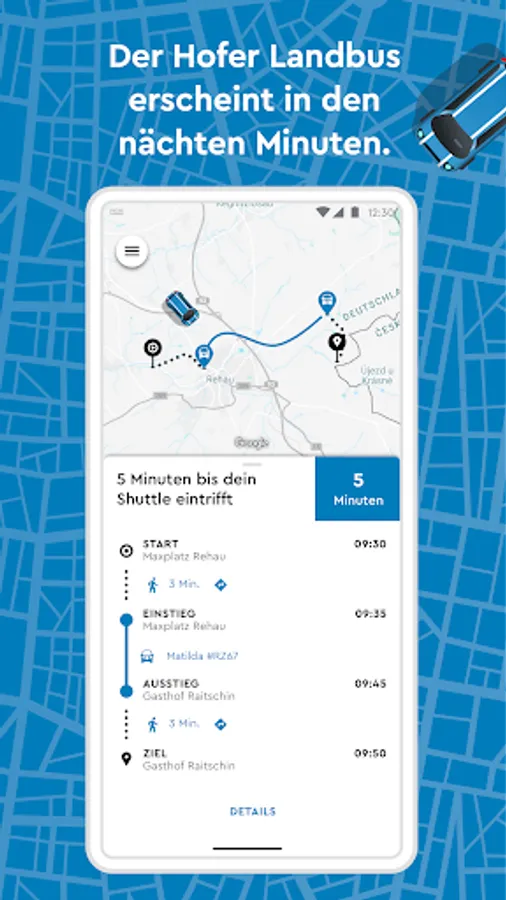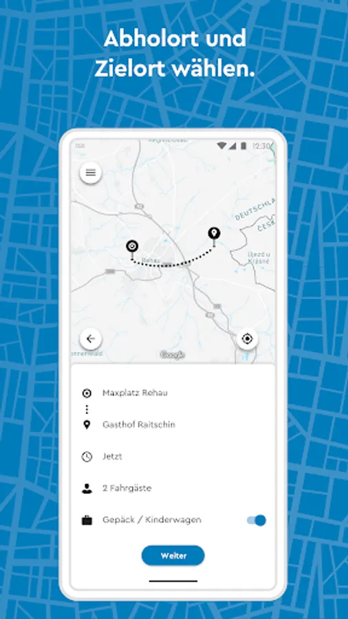 Our app offers you many advantages. You can see where your booked vehicle is located and pre-book rides. You can search for your desired destination on the map or enter the destination address. If you are dependent on a wheelchair-accessible vehicle, you can store this in the app.