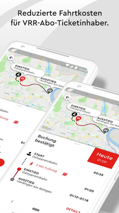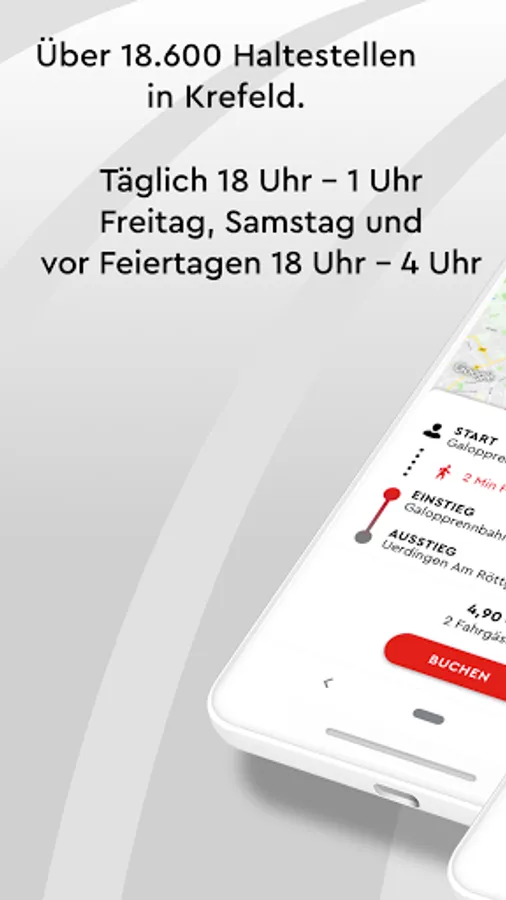 We will navigate you to a nearby virtual stop where you will be picked up. The trip is paid for directly with the credit card stored in the app or via Google Pay.