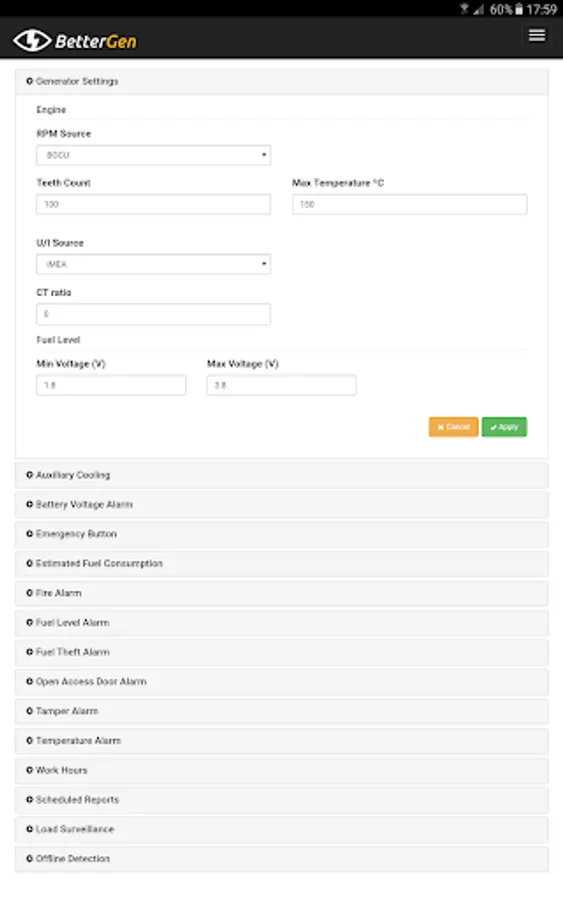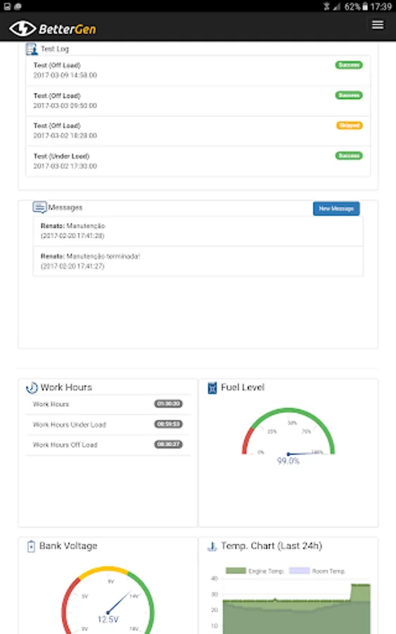BetterGen is a system that allows monitoring of Electrical Generators that their availability is guaranteed when they are required due to power failure.