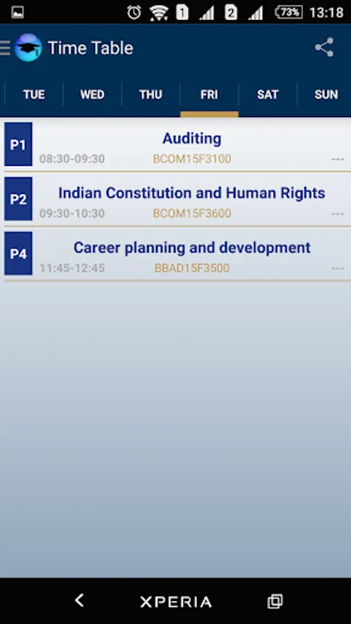 Enter with the student username and password and get all the information about attendance, absence details, timetable,Marks card, university events and notification etc..