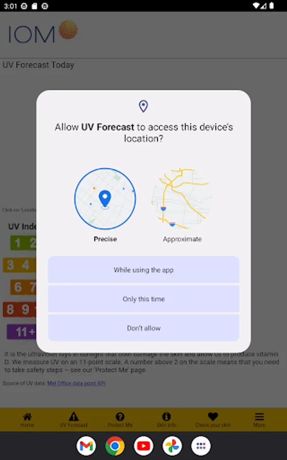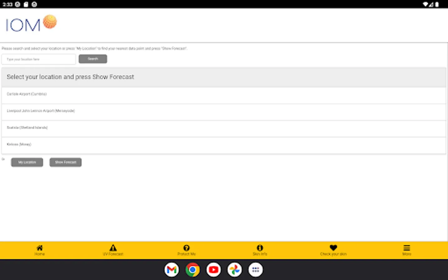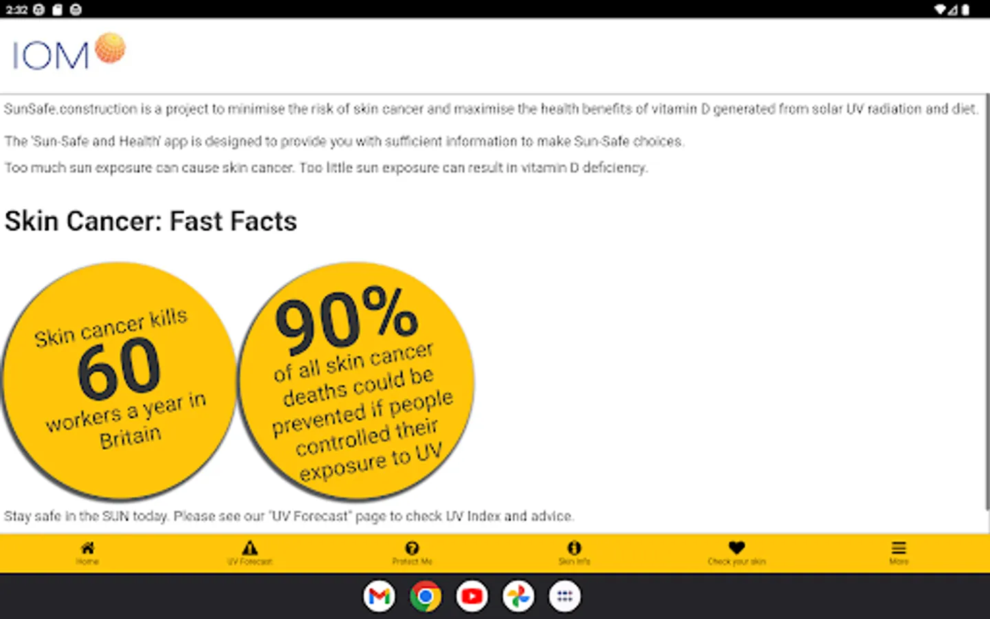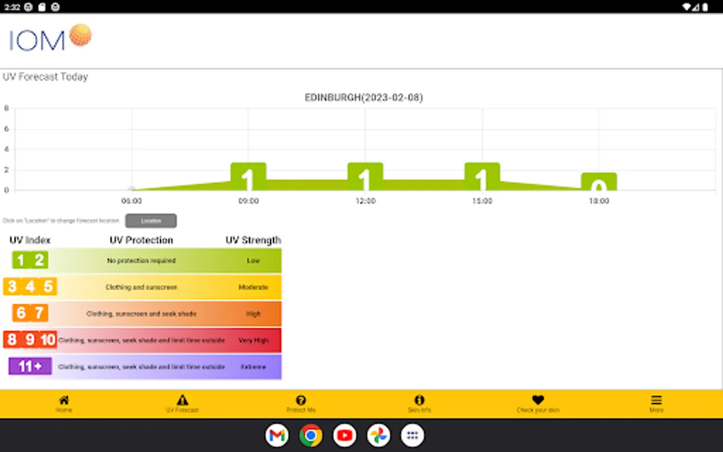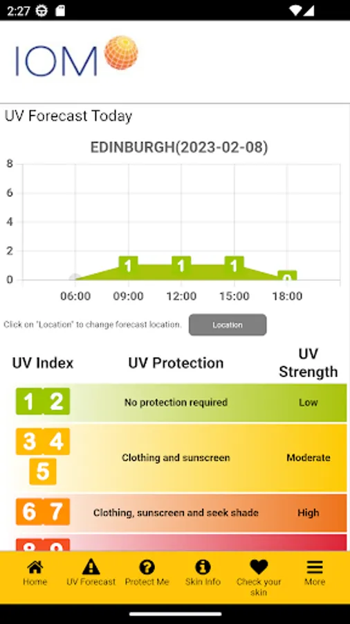 An app which uses the Met office DataPoint API to gather the forecast for UV where you are in the UK. Displaying the UV values for your forecast and providing information on what to do for the levels of UV you could be exposed to.
