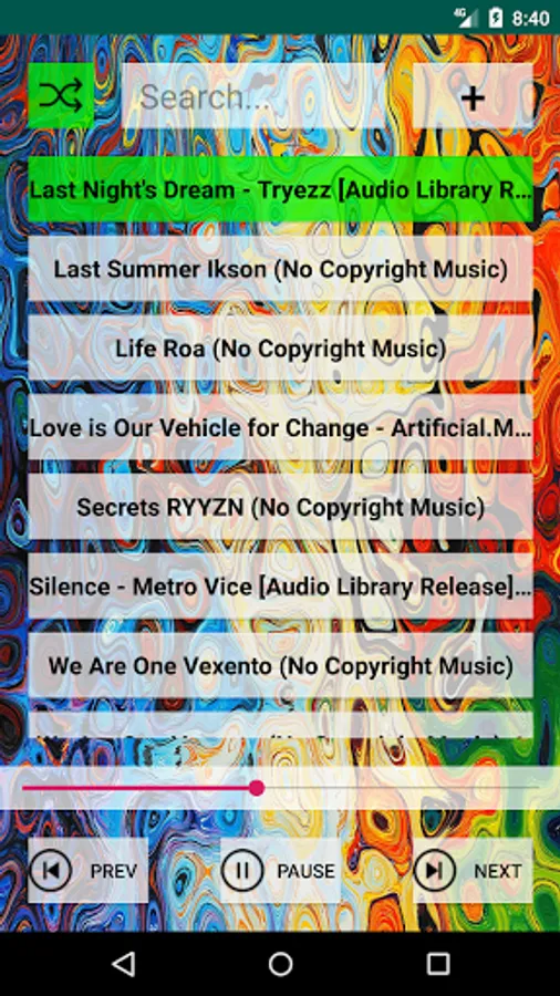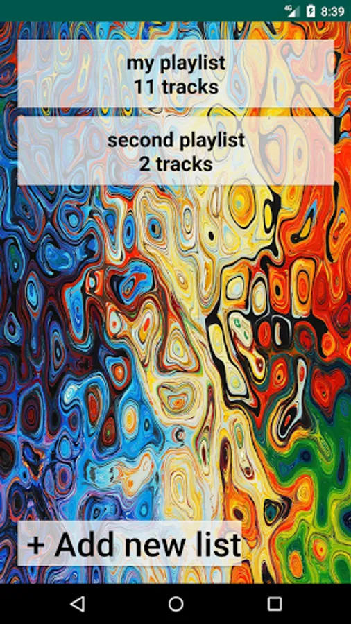 The application offers the possibility of creating multiple playlists. Load mp3 files from your phone. Play, pause, scroll and search your playlist.