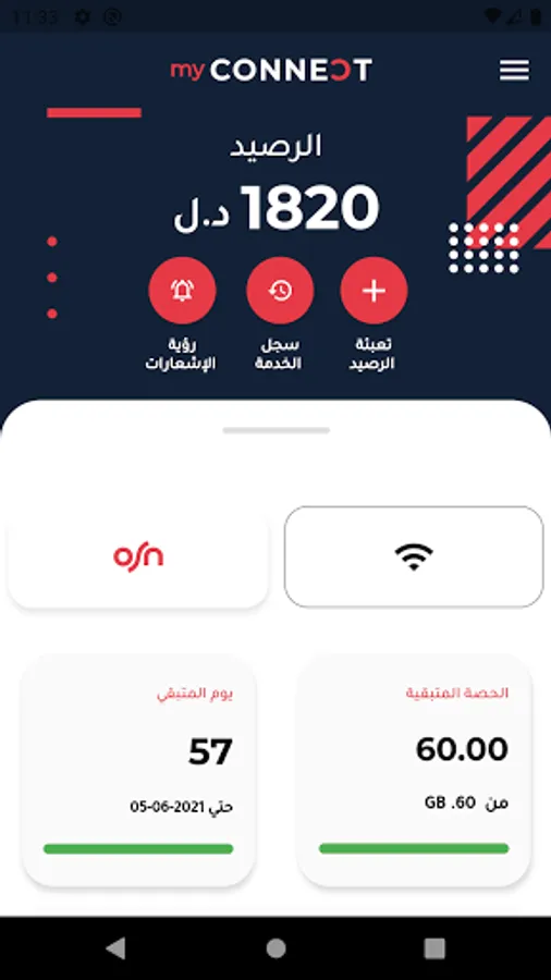 A Connect customer will be able, by using the "My Connect" application, to know his service history through visual forms that show his consumption rate, expiration date, and others.